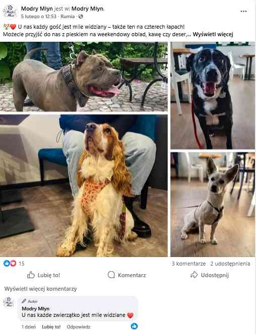 Restauracja Modry Młyn przypomina prostą, ale bardzo ważną prawdę: pies to członek rodziny. A skoro tak, powinien mieć swoje miejsce także w przestrzeni publicznej i towarzyskiej. Dzięki takim miejscom Rumia staje się bardziej otwarta, bardziej ludzka i bardziej przyjazna – zarówno dla ludzi, jak i zwierząt.