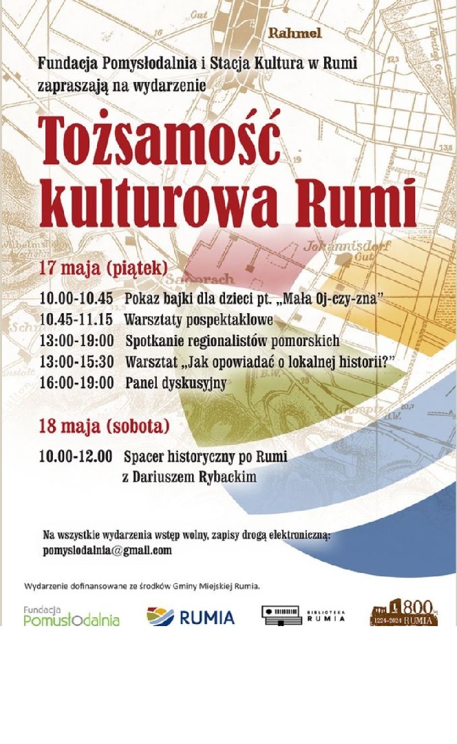 Na dwudniowe spotkanie złożą się: spektakl i warsztaty pospektaklowe dla najmłodszych, warsztat „Jak opowiadać o lokalnej historii?" i panel dyskusyjny z udziałem czołowych pomorskich regionalistów oraz spacer historyczny.
